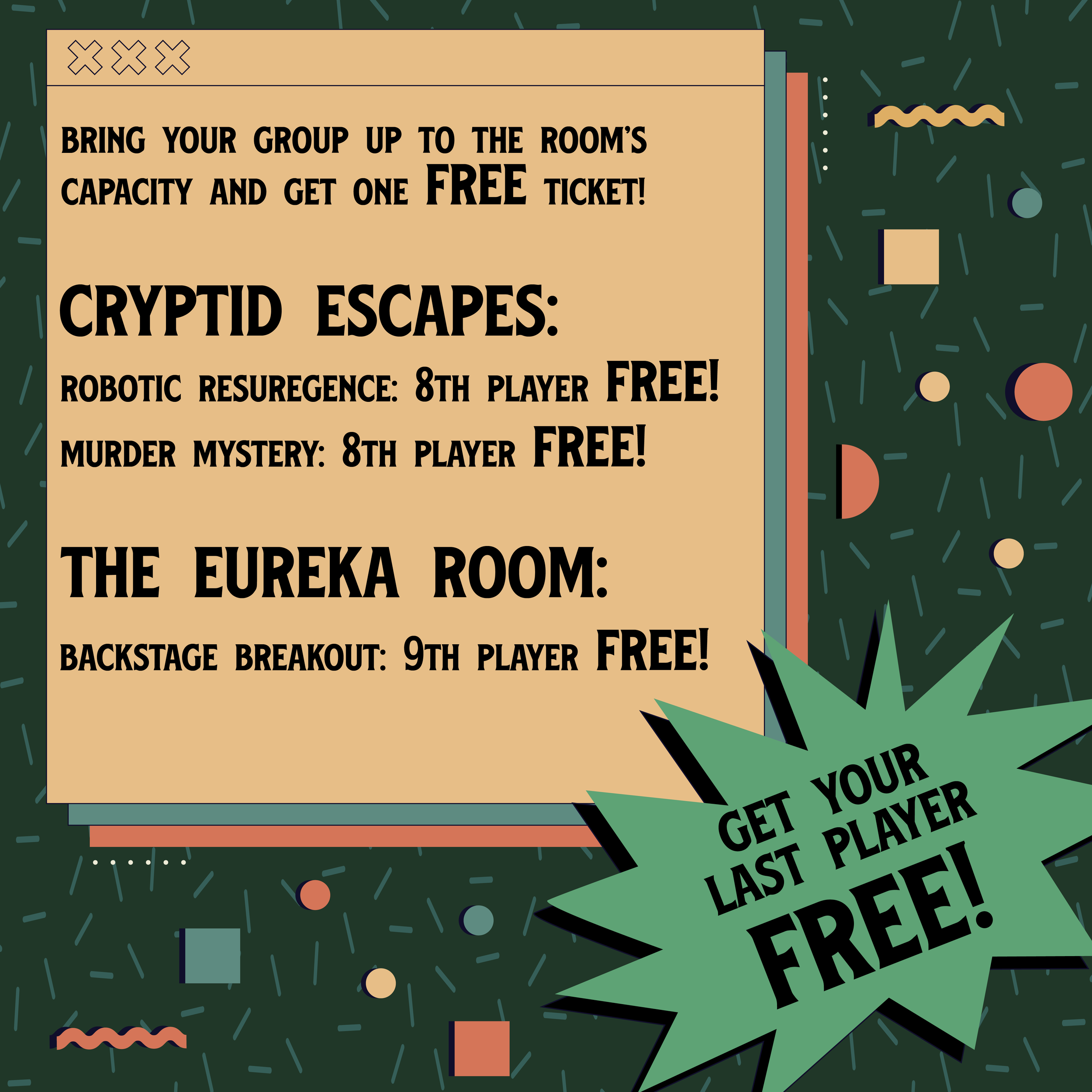 Show up for Backstage Breakout with the maximum players allowed for a room and get one of them free!
